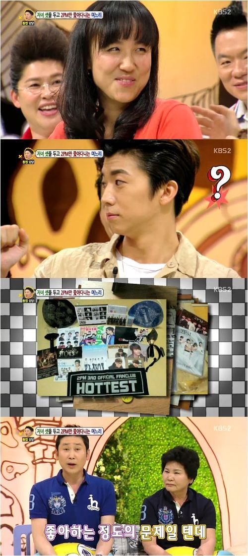 27일 방송된 KBS 2TV 토크쇼 ‘안녕하세요’에는 2PM에 푹 빠진 며느리를 고발하는 시어머니가 출연했다. 이 며느리는 시어머니에게 거짓말을 하고 2PM을 보기 위해 일본까지 갔다고 고민을 토로했다.