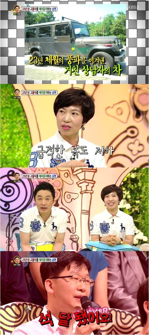 27일 방송된 KBS 2TV 토크쇼 ‘안녕하세요’에는 9년 전에 다른 사람이 타던 중고차를 구입해 타고 있는 남편 때문에 답답한 아내가 고민을 토로했다. 이 차는 무려 23년이 된 차다.