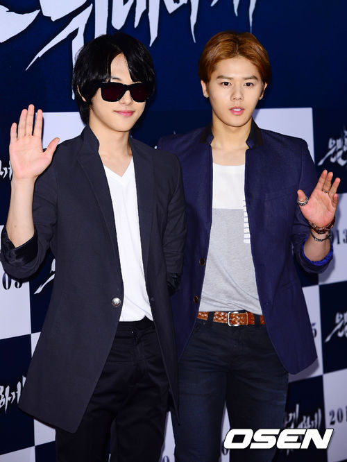 27일 저녁 서울 강남구 삼성동 코엑스 메가박스에서 열린 영화 '은밀하게 위대하게(장철수 감독)' VIP 시사회에서 제국의 아이들 임시완과 김동준이 포토타임을 갖고 있다.