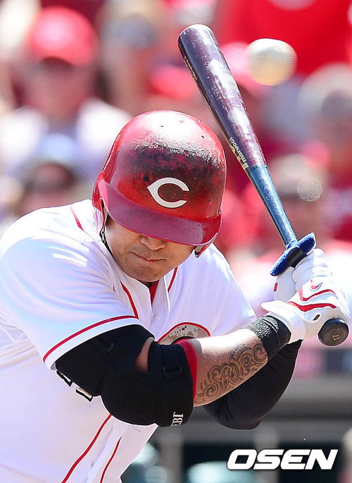 28일 새벽(이하 한국시간) 미국 오하이오주 신시내티 그레이트 아메리칸 볼파크에서 열린 신시내티 레즈와 클리블랜드 인디언스의 경기 8회말 순두타자 추신수가 높은공을 고르고 있다.