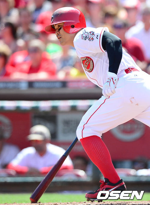 28일 새벽(이하 한국시간) 미국 오하이오주 신시내티 그레이트 아메리칸 볼파크에서 열린 신시내티 레즈와 클리블랜드 인디언스의 경기 8회말 선두타자 추신수가 좌전안타를 치고 달리고 있다.