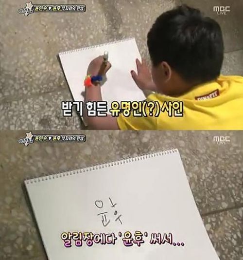 그런 후가 이날 방송에서도 스스럼 없는 행동으로 '섹션TV' 제작진의 사랑을 한몸에 받았다. 제작진의 사인 요청에 윤후 군이 엎드려 스케치북에 또박또박 자기 이름을 적어내려갔기 때문.