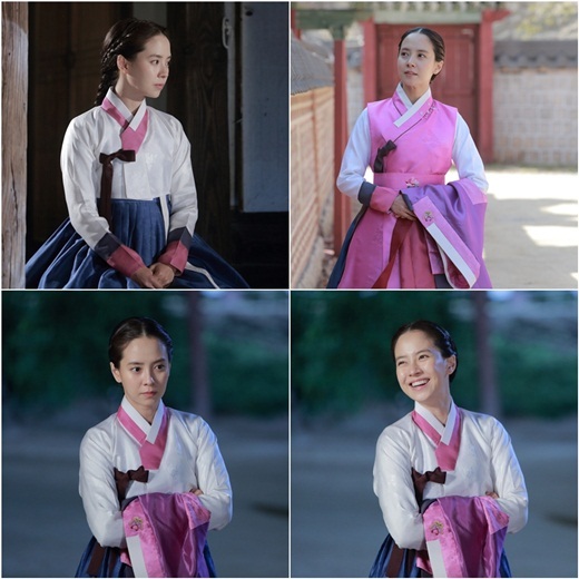 28일 공개된 네 장의 사진 속 송지효는 툇마루에 앉아 누군가를 응시하고 있으며, 무언가 결심한 표정에 이어 환한 미소를 짓고 있다. 특히 다양한 표정을 짓고 있는 송지효는 단아하고 고운 한복 자태를 자랑해 보는 재미를 더한다.