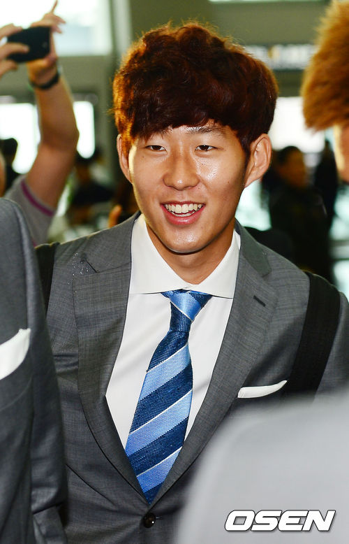 최강희 호가 28일 오후 다음달 열리는 레바논과의 2014 브라질 월드컵 아시아지역 최종예선 6차전 원정경기를 위해 출국했다. 출국 전 손흥민이 미소짓고 있다.