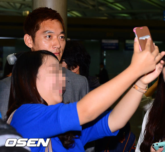 최강희 호가 28일 오후 다음달 열리는 레바논과의 2014 브라질 월드컵 아시아지역 최종예선 6차전 원정경기를 위해 출국했다. 출국 전 김남일이 팬과 함께 셀프카메라를 찍고 있다.