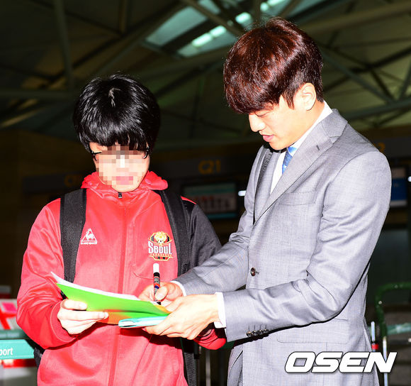 최강희 호가 28일 오후 다음달 열리는 레바논과의 2014 브라질 월드컵 아시아지역 최종예선 6차전 원정경기를 위해 출국했다. 출국 전 이청용이 팬에게 사인을 해주고 있다.