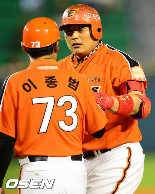 28일 오후 서울 잠실구장에서 열린 2013 한국야쿠르트 세븐프로야구 LG 트윈스와 한화 이글스 경기, 6회 선두타자 한화 김태균이 LG 선발 리즈를 공략해 우전안타를 만들어 1루를 밟았다. 이로써 김태균은 지난 2012년 9월 27일 문학 SK전에서부터 50경기 연속 출루에 성공했다.