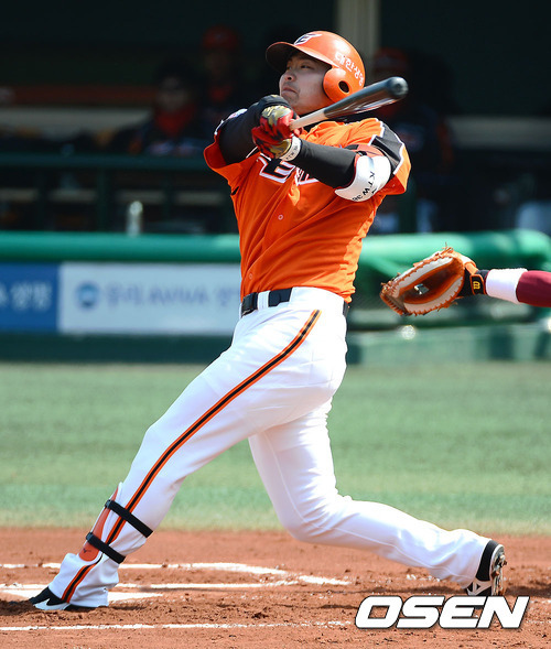 한화 외야수 김태완이 역전 솔로포로 시즌 마수걸이 홈런을 장식했다.