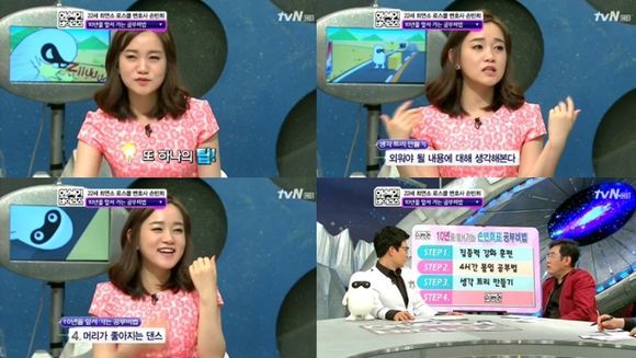 그는 "왼손을 배에 대고 위, 아래로 문지르면서 오른손은 주먹을 쥐고 배를 두드리는 뇌체조를 하루에 10분씩 했다. 4시간 몰입 공부법이라고 해서 4시간 공부하고 1시간 쉬고 다시 4시간을 공부했으며 생각트리를 만들어서 연상되는 단어를 자투리 시간을 이용해 외웠다"고 설명했다.