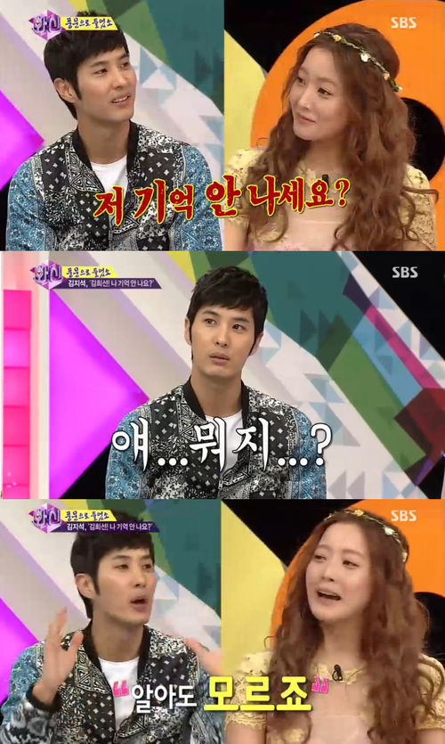 김지석은 28일 방송된 SBS 예능 프로그램 '화신-마음을 지배하는 자'에 출연, "김희선 씨께 여쭤보고 싶은게 있어요"라고 말한 후 "저 기억 안나세요?"라고 MC 김희선에게 뜬금없는 질문을 던졌다.