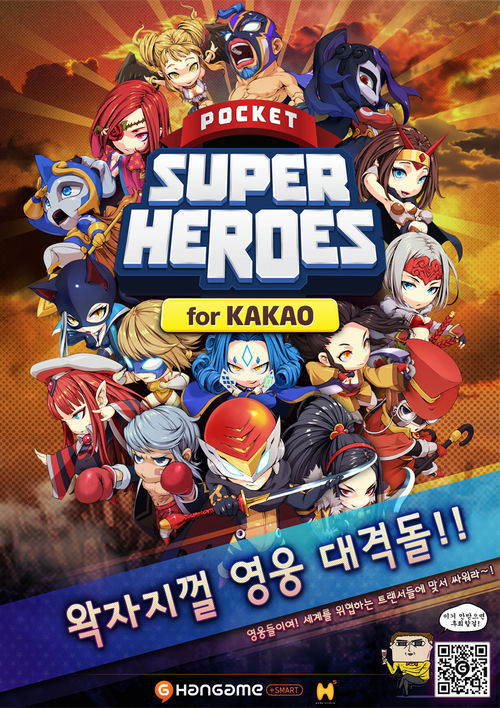 '포켓슈퍼히어로즈'는 카카오톡 게임하기 또는 구글 플레이와 앱스토어에서 누구나 다운로드 받을 수 있다.