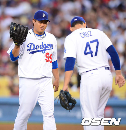 최고 94마일 강속구를 바탕으로 경기 초반 힘으로 압도한 류현진은 6회 이후 커브-체인지업-슬라이더 등 다양한 변화구를 섞어던지며 에인절스의 타자들의 타이밍을 빼앗았다. 여기에 완벽하게 이뤄진 제구에 루킹 삼진만 3개나 뺏어냈다.