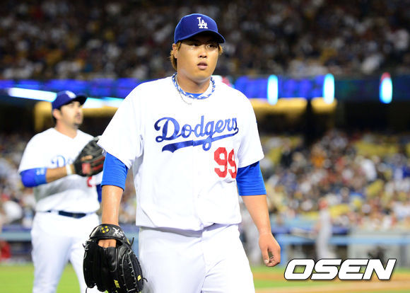 류현진이 8회초 이닝종료 후 무덤덤한 표정으로 더그아웃으로 들어가고 있다. / baik@osen.co.kr