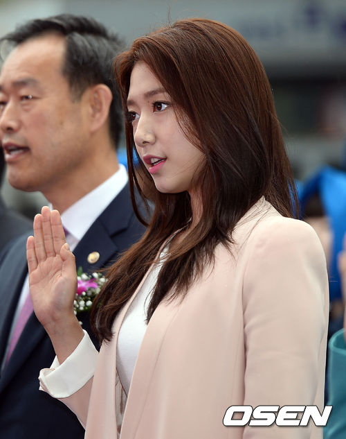 29일 오후 이화여자대학교 앞 대현공원에서 진행된 특허청 '위조상품 구매근절 캠페인' 홍보대사 위촉식에서 박신혜가 위조상품 구매근절 선서를 하고 있다.