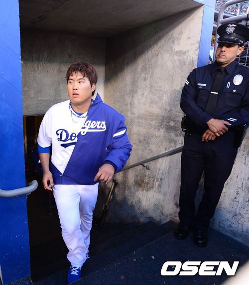 류현진이 2회초 투구를 마치고 락커룸에 다녀오고 있다. / baik@osen.co.kr