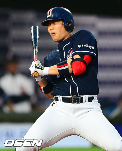 29일 오후 부산 사직구장에서 열린 2013 한국야쿠르트 세븐프로야구 롯데 자이언츠와 두산 베어스의 경기, 4회초 2사 주자 1,2루 두산 윤석민이 타석에서 몸쪽으로 붙어오는 빠른공에 놀라고 있다.