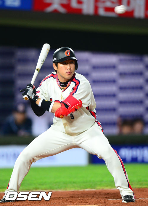 29일 오후 부산 사직구장에서 열린 2013 한국야쿠르트 세븐프로야구 롯데 자이언츠와 두산 베어스의 경기, 6회말 2사 주자 1루 롯데 전준우 타석에서 볼이 높게 오자 웅크리고 있다.