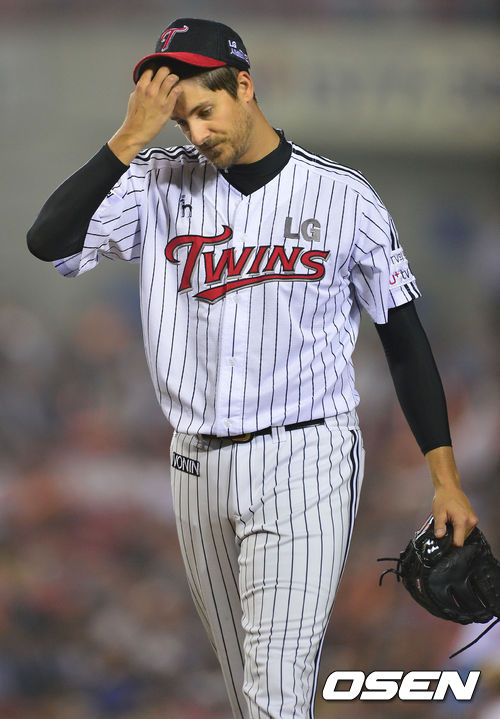 29일 오후 서울 잠실야구장에서 '2013 한국야쿠르트 세븐 프로야구' LG 트윈스와 한화 이글스의 경기가 열렸다. 6회초 한화 공격 1사 주자없는 상황 LG 선발 주키치가 마운드를 내려가고 있다.