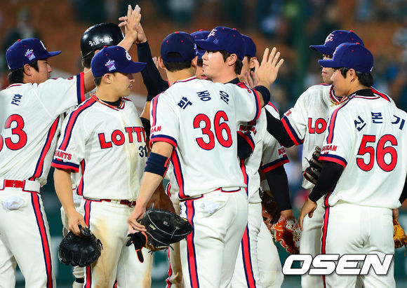 경기를 마치고 롯데 선수들이 마운드 근처에 모여서 기쁨을 나누고 있다. / rumi@osen.co.kr
