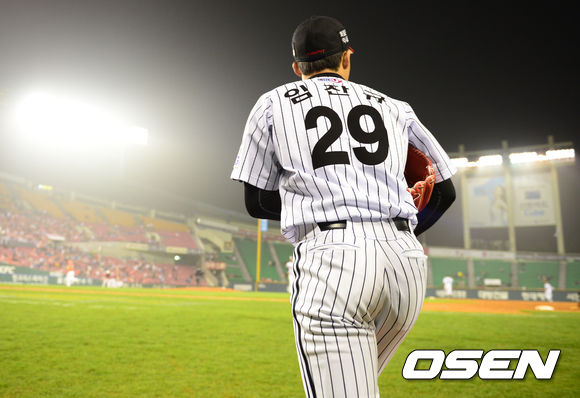 29일 오후 서울 잠실야구장에서 '2013 한국야쿠르트 세븐 프로야구' LG 트윈스와 한화 이글스의 경기가 열렸다. 9회초 한화 공격, 최근 물벼락 세리머니로 논란이 된 LG 투수 임찬규가 마운드에 오르고 있다.