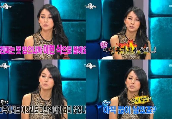 하지만 MC들의 질문은 계속됐다. 이효리는 '소주 광고를 그만 둔 것이냐, 짤린 것이냐'는 다소 난처한 질문에도 "나도 그만해야겠다는 생각에 광고주 쪽에서도 이효리가 그만할 때가 되지 않았냐고 말했다더라. 그래서 이제 소주 종류를 바꿨다"고 능수능란하게 답하며 이효리다운 쿨한 매력을 펼쳤다.
