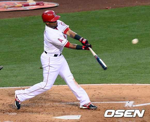 30일 오전(이하 한국시간) 미국 캘리포니아주 애너하임 에인절스타디움에서 열린 LA 에인절스와 LA 다저스의 경기 2회말 2사 3루 아이바가 1타점 2루타를 치고 있다.