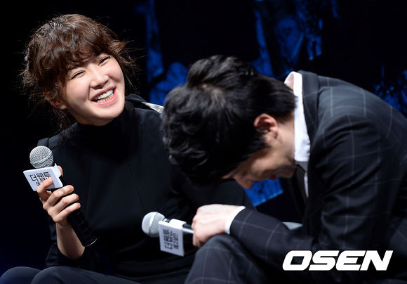 30일 오후 서울 CGV 압구정에서 진행된 영화 '더 웹툰:예고살인' 제작보고회에서 이시영이 엄기준과의 영화 에피소드를 이야기하고 있다.