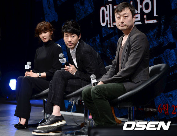 30일 오후 서울 CGV 압구정에서 진행된 영화 '더 웹툰:예고살인' 제작보고회에서 이시영, 엄기준, 김용균 감독이 질의 응답을 받고 있다.