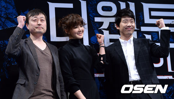 30일 오후 서울 CGV 압구정에서 진행된 영화 '더 웹툰:예고살인' 제작보고회에서 김용균 감독, 이시영, 엄기준이 포토타임을 갖고 있다.