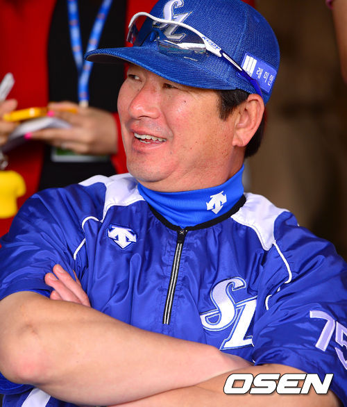 30일 오후 인천 문학구장에서 열리는 '2013 한국야쿠르트 세븐프로야구' SK 와이번스와 삼성 라이온즈의 경기, 경기에 앞서 삼성 류중일 감독이 인터뷰를 하고 있다