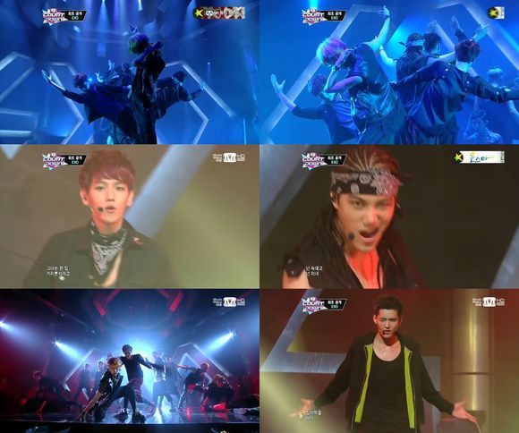 이날 '엠카'에서 엑소는 남성미 넘치는 퍼포먼스를 보여줘 여성 팬들의 환호를 자아냈다. 검정색 의상을 입고 등장한 엑소는 표정부터 안무까지 카리스마 넘치는 무대를 꾸몄다.
