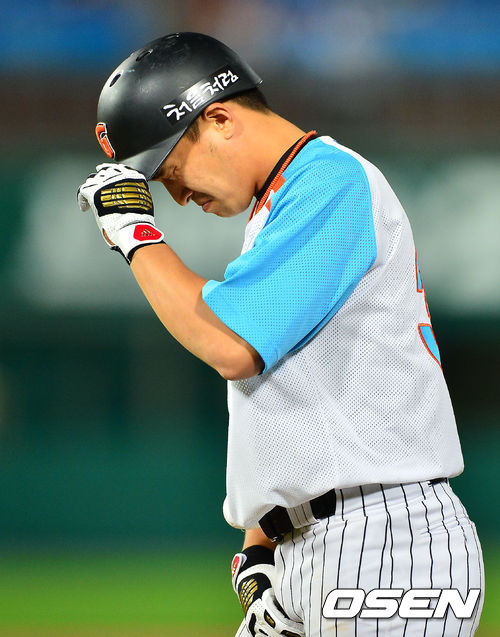 30일 오후 부산 사직구장에서 열린 2013 한국야쿠르트 세븐프로야구 롯데 자이언츠와 두산 베어스의 경기에서 7회말 1사 주자 없는 상황에서 롯데 손아섭이 좌월 홈런성 파울타구를 날린 후 아쉬워하고 있다. 이 타구는 비디오 판독결과 파울로 판독났다.