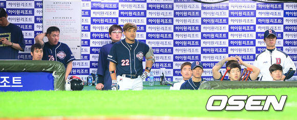 30일 오후 부산 사직구장에서 열린 2013 한국야쿠르트 세븐프로야구 롯데 자이언츠와 두산 베어스의 경기에서 8회말 두산 덕아웃 분위기가 어둡다.