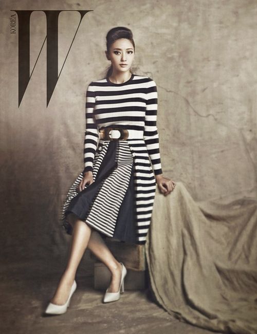 한채영은 최근 진행된 패션 매거진 ‘W 코리아’의 100호 발행 기념 화보 촬영에서 스트라이프 패턴의 의상을 입고 미모를 과시했다.