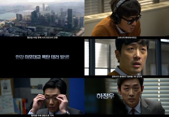 이번에 공개된 1차 예고편은 서울 도심의 익숙한 전경들을 보여주며 시선을 사로잡는다. 평소와 다름없이 라디오를 진행하고 있던 앵커 하정우가 신원 미상 청취자에게 “마포대교를 폭파하겠다”는 협박 전화를 받는 모습에서 심상치 않은 사건의 전조를 알린다.