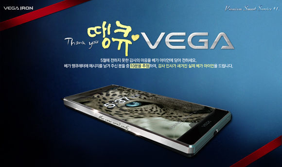 이번 프로모션은 5월 31일 오후 6시부터 6월 12일까지 베가 브랜드 사이트에서 응모할 수 있으며, 메시지 응모작 중 추첨을 통해 총 10명을 선정, 응모자가 등록한 메시지를 시그니처로 새긴 베가 아이언을 증정한다.