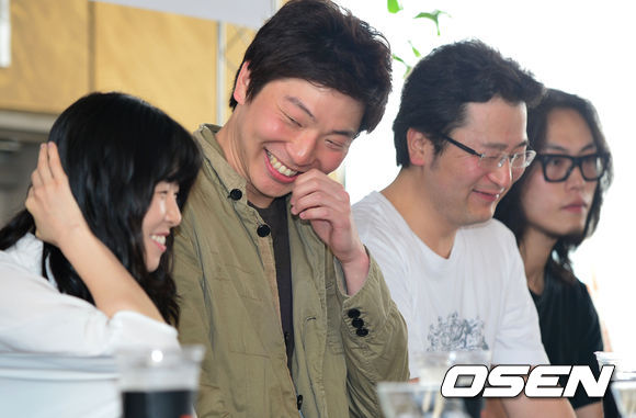 영화 '세이프(Safe)'로 제66회 칸 국제영화제 단편부문 최고상 수상의 쾌거를 안은 문병곤 감독과 주연배우인 강태영-이민지, 각본가 권오광이 31일 오전 서울 사당동 아트나인에서 기자회견을 가졌다. 문병곤 감독과 배우 이민지가 대화를 나누며 미소짓고 있다.