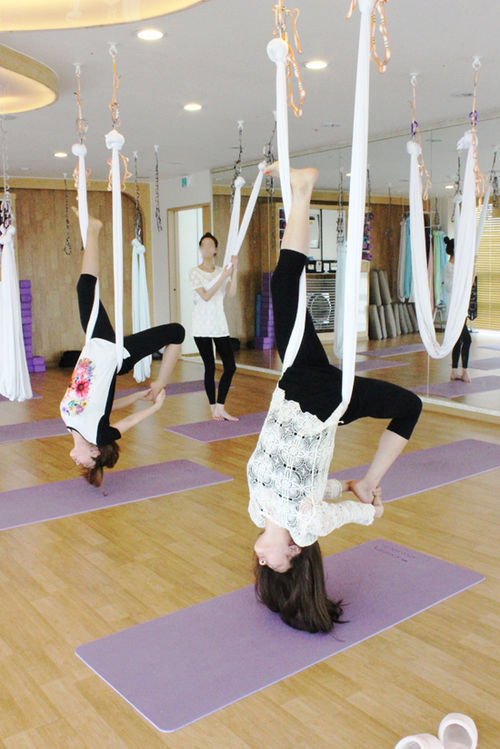 플라잉 요가란 천장에 매달린 줄을 이용해 공중에 떠서 하는 요가다. 매달린 줄을 이용하기 때문에 지상에서 하는 일반적인 요가보다 훨씬 난이도가 높으며 스트레칭이나 근력을 키우는 데에 더 큰 도움이 된다.