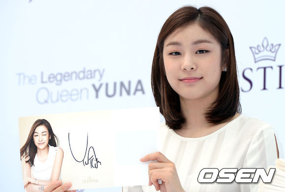 31일 오후 서울 강남구 삼성동 현대백화점 무역센터점에서 진행된 김연아 팬 사인회에서 김연아가 직접 사인한 종이를 들고 포즈를 취하고 있다.