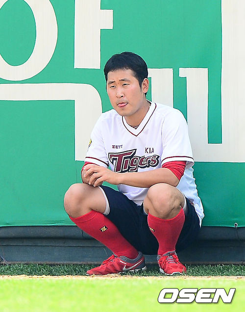 31일 오후 광주 무등구장에서 2013 한국야쿠르트 세븐프로야구 KIA 타이거즈와 LG 트윈스의 경기가 열릴 예정인 가운데 양팀 훈련 시간에 KIA 윤석민이 훈련을 마친 후 휴식을 취하고 있다.