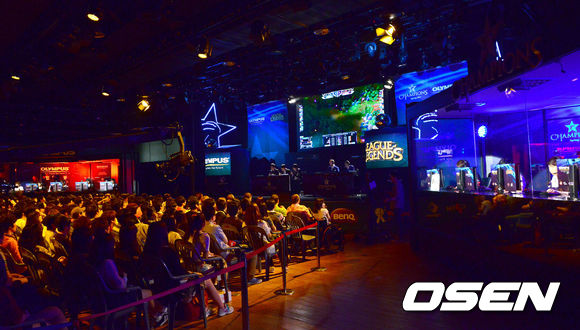 31일 오후 서울 용산 온게임넷 e스포츠상설경기장에서 열린 '올림푸스 LOL 챔피언스(롤챔스)' 스프링 2013시즌 4강전 CJ 엔투스 프로스트와 CJ 엔투스 블레이즈의 경기 관중들이 가득한 가운데 경기가 진행되고 있다.