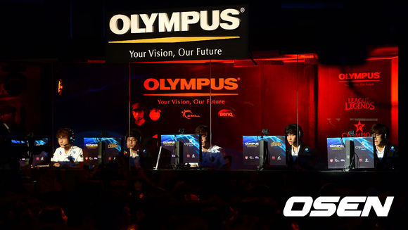 31일 오후 서울 용산 온게임넷 e스포츠상설경기장에서 열린 '올림푸스 LOL 챔피언스(롤챔스)' 스프링 2013시즌 4강전 CJ 엔투스 프로스트와 CJ 엔투스 블레이즈의 경기,1세트 블레이즈 선수들이 경기를 펼치고 있다.