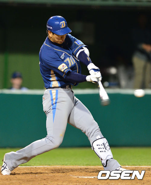 31일 오후 대전구장에서 '2013 한국야쿠르트 세븐 프로야구' 한화 이글스와 NC 다이노스의 경기가 열렸다. 5회초 NC 공격 2사 2루 상황, 2번 모창민이 1타점 적시타를 날리고 있다.