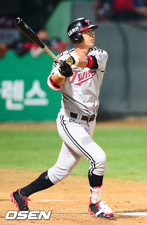 31일 오후 광주 무등구장에서 열린 2013 한국야쿠르트 세븐프로야구 KIA 타이거즈와 LG 트윈스의 경기, 7회초 무사 주자 만루 LG 박용택이 만루 홈런을 날리고 있다.