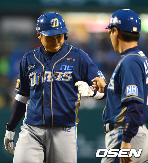 NC는 6회초 첫 타자 이호준이 중전안타를 쳤고 이호준을 대주자 이상훈과 교체, 승리 지키기에 들어갔다. 조영훈의 볼넷과 권희동의 희생번트로 1사 2, 3루, 지석훈의 우익수 희생플라이와 노진혁 타석에서 이브랜드의 폭투 조영훈이 득점해서 5-0, 5점차로 도망갔다.