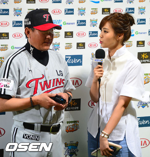 경기를 마치고 승리 인터뷰때 KBSN 정인영 아나운서가 LG 김기태 감독을 인터뷰 하고 있다. / rumi@osen.co.kr