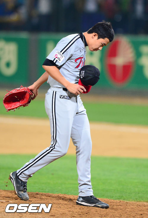 마무리로 올라온 LG 임찬규가 경기를 마치고 고개 숙여 인사하고 있다. / rumi@osen.co.kr