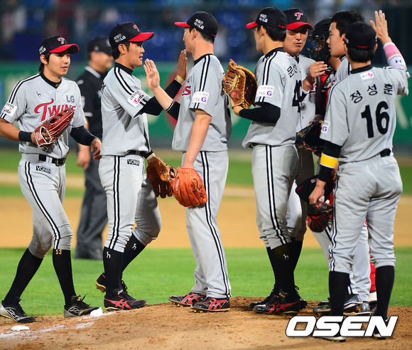 경기를 마치고 LG 선수들이 마운드에 모여 승리의 기쁨을 나누고 있다. / rumi@osen.co.kr