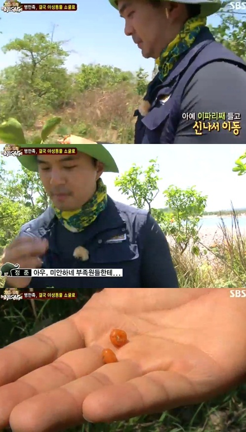정준은 “부족원들에 미안하다”고 말하면서도 동물 찾기는 뒷전으로 하고 달콤한 열매를 계속해서 흡입해 웃음을 자아냈다.