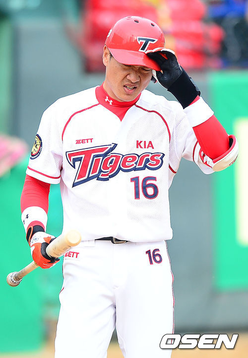 1일 오후 광주 무등구장에서 열린 2013 한국야쿠르트 세븐프로야구 KIA 타이거즈와 LG 트윈스의 경기, 1회말 1사 주자 없는 상황에서 타석에 오른 김주찬이 파울 타구를 날린 후 아쉬워하고 있다.